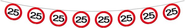 25th Birthday Traffic Sign Garland – 12 m. Contents: 1 bunting garland. Colour: Multi Colors. You can use this article for the following party occasion(s): Birthday This garland is 12 m long. The article is made of paper.