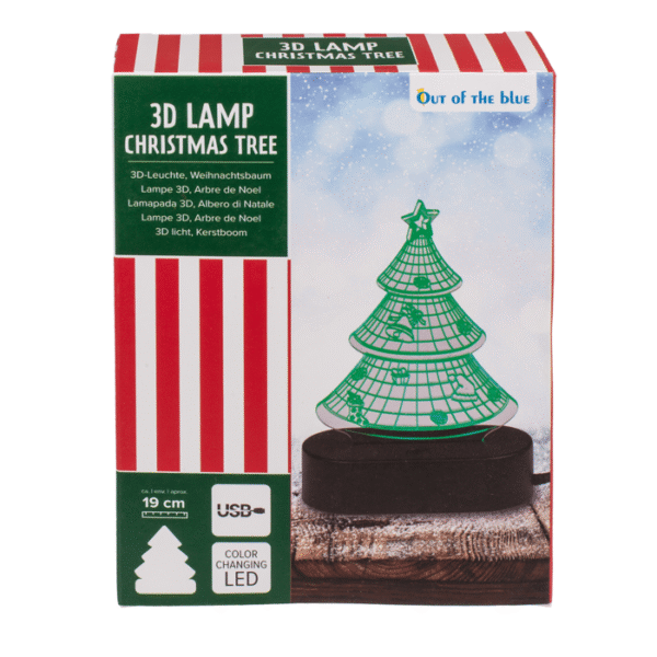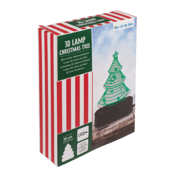 3D-Lamp, Christmas Tree, ca. 19 cm, plastic, with USB-cable, in gift box – The decorative product fits perfectly as a night lamp for children or as a small addition to a Christmas gift. The special feature of the 3D lamp is the self-changing colors that will enchant any child. The perfect decoration for all Christmas lovers and all those who enjoy Christmas until the last day. Christmas decor