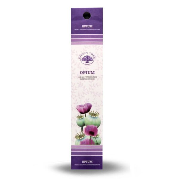 This one makes you dreamy. We invite you to be enchanted by Opium incense sticks with its mix of spicy oriental herbs and floral scents. An exotic and warm odor that brings consolation and ecstasy. Opium is widely used for promising evenings and to dream away together. This Oriental fragrance is authentic, very present and gives you confidence. Green Tree symbolizes precious valued natural products that can only be discovered