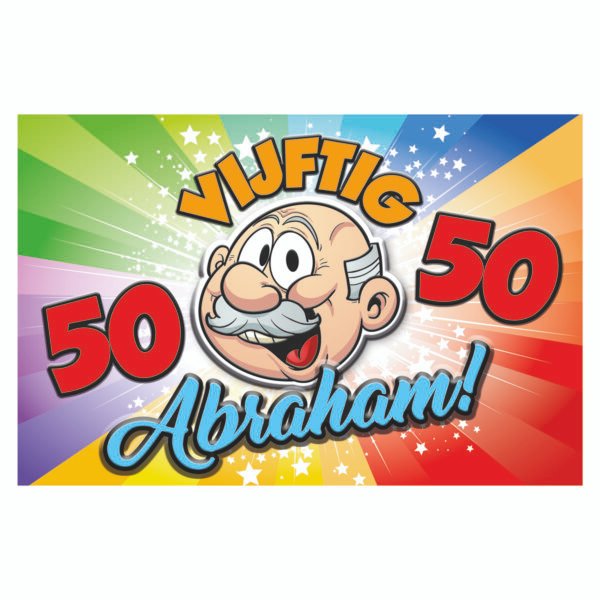 50th Birthday Abraham Rainbow Door Sign – 58×37 cm. Contents: 1 Door Sign. Colour: Multi Colors. You can use this article for the following party occasion(s): Birthday. The door sign is 58 x 37 cm. The article is made of plastic.
