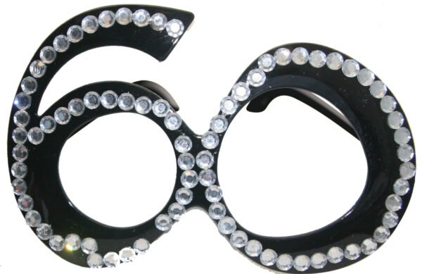 60th Birthday Glasses Black with Diamond Frame. Contents: Glasses. Colour: Black. You can use this article for the following party occasion(s): a birthday. Target group: adults. These glasses are made of plastic.