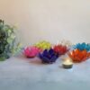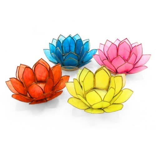 Made from natural capiz shell, each holder represents one of the seven chakras, supporting harmony and energy flow during meditation, yoga or relaxation.