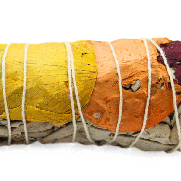 Experience tranquility with the 7 Chakra White Sage Smudge Stick by Green Tree Candle. This 22cm smudge stick combines rose petals and sage, blending Eastern traditions with modern wellness practices. Ideal for inviting harmony and peace into your space. As with all Green Tree Candle products, quality and authenticity are at the heart of this smudge stick. Enjoy the scents of nature, and let your chakras align.