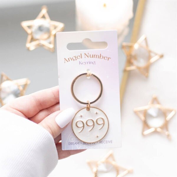Connect with the universe and attract divine guidance with this 999 Angel Number Keyring. Angel numbers are believed to convey spiritual messages and support from the universe. Seeing ‘999’ signifies release and suggests that it’s time to start a new journey, and to let go of what’s no longer serving you. Crafted from durable metal and displayed on a matching backing card, this keyring is not only a stylish accessory but also a source of inspiration and positive energy. A thoughtful and meaningful gift for yourself or a loved one to carry wherever you go.
