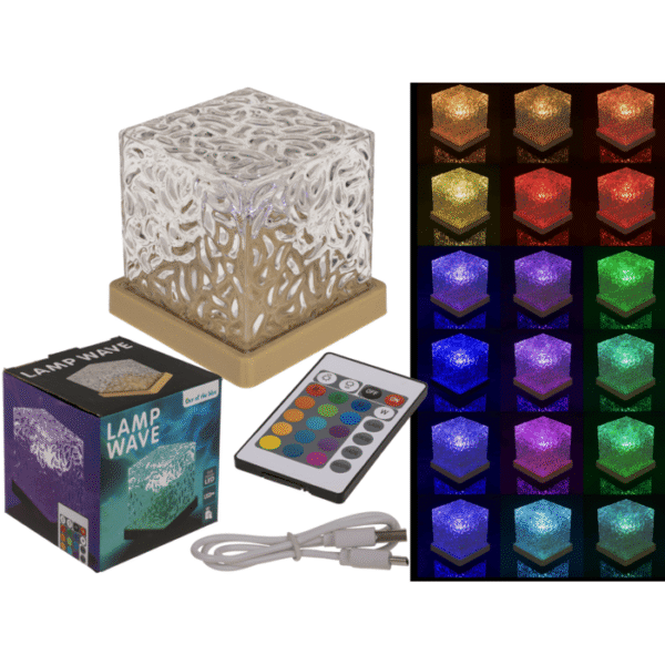 Acrylic lamp, Waves, 11.5 x 11.5 x 11.5 cm, 800 mAh battery, with USB cable and remote control, in gift box – acrylic lamp wave LED lamp rechargeable night light battery-operated desk lamp USB rechargeable lamp remote control LED light ambient mood light decorative bedside lamp gift-ready lamp lighting highlights 2025