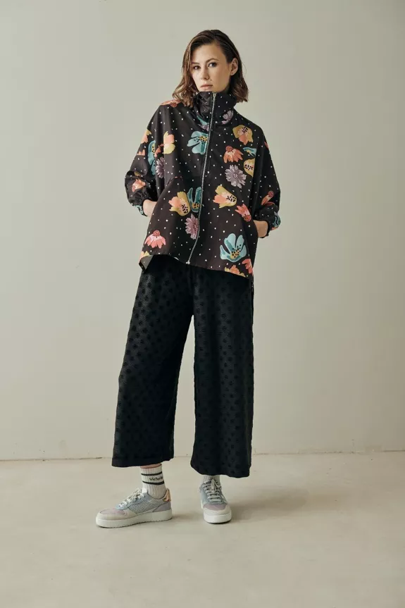 A sporty piece transformed by the essence of Malahierba: a wonderful piece made from waterproof eco-friendly viscose with our signature print this season, which will make your style shine whether in the city or in the mountains. With pockets, elasticated cuffs, and metal zippers, it’s as eye-catching as it is functional, making it a sure value for any look you want to create with it.