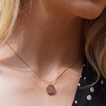 Through our upcycled jewellery, we hope to capture the beauty of nature and inspire more people to reuse, recreate and recycle as a means of reducing polluting waste. For this necklace, our maker was inspired by the beauty of the Aster, a daisy like wildflower which symbolises love, faith and wisdom.