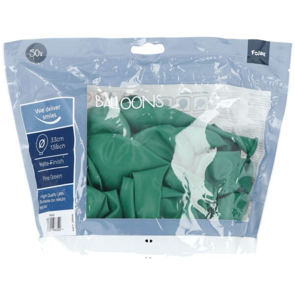 Balloons Pine Green Matt 33cm – 50 pieces. Contents: 50 Latex Balloons. Colour: Green. You can use this article for the following party occasion(s): Birthday