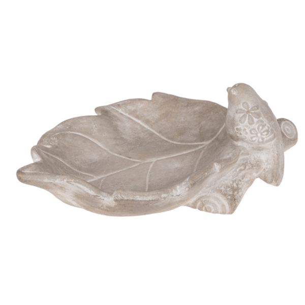 Bird feeder, leaf with bird, ca. 28,5 x 19 x 11,5 cm, cement – Outdoor decor
