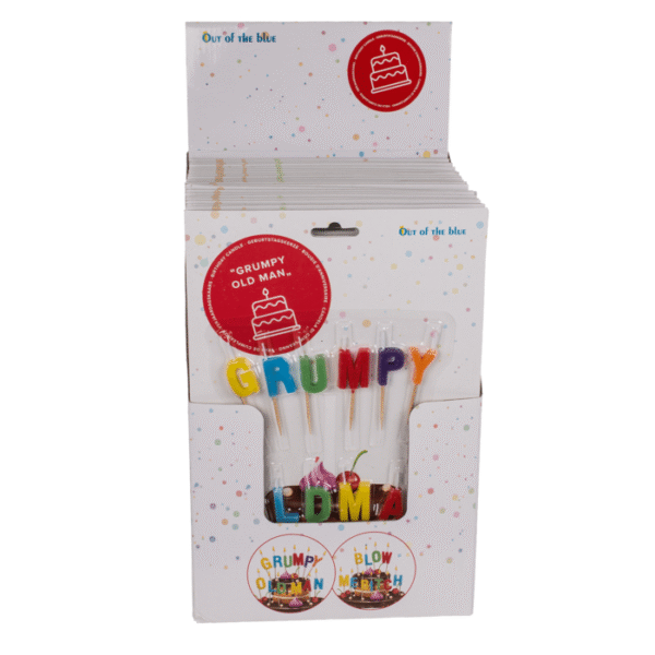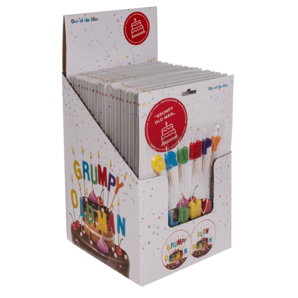 Birthday candle, “Blow me Bitch””Grumpy old man”, ca. 2,5 x 0,7 cm, on blister card, 2 ass., 24 pcs per display – There’s nothing like honesty! With the lovely birthday candles, the birthday boy or girl is brought back down to earth. The colorful letters can be easily attached to the cake thanks to the wooden sticks. These honest cake candles can therefore quickly highlight any birthday party! The funny candles are also a welcome change from the usual and harmless candles. Funny candle
