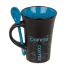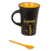 Black Ceramic Mug with spoon, Coffee, ca. 12 x 9 cm, 4 colours ass. – With this practical cup, you no longer have to think about where to put your spoon after stirring, as the handle of the cup has an integrated place for the spoon and the spoon is even included! The colour of the spoon matches the inside of the cup, so the first coffee in the morning tastes twice as good! The capacity of the cup measures 300 ml and is also a real eye-catcher as a gift when filled with chocolates. Black Mug