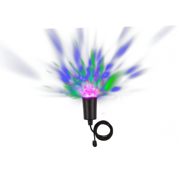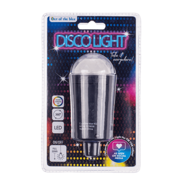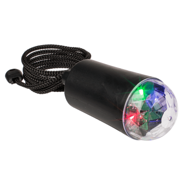 Black disco pendant lamp with colour changing LED ca. 11,5 cm, plastic, for 3 micro batteries (AAA) on blistercard – Turn your home party into a real dance club with this LED disco light! The LED light has colour-changing LEDs that run on 3 AAA batteries. As the lamp rotates, it reflects colorful lights. Thanks to the attached rope, the disco light can be hung freely in the room. Disco lamp