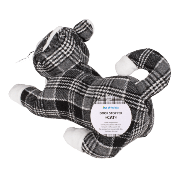 blackgreywhite checkered door stopper, cat, ca. 28cm, made of 100% polyester, ca. 1 kg – Cat door stopper