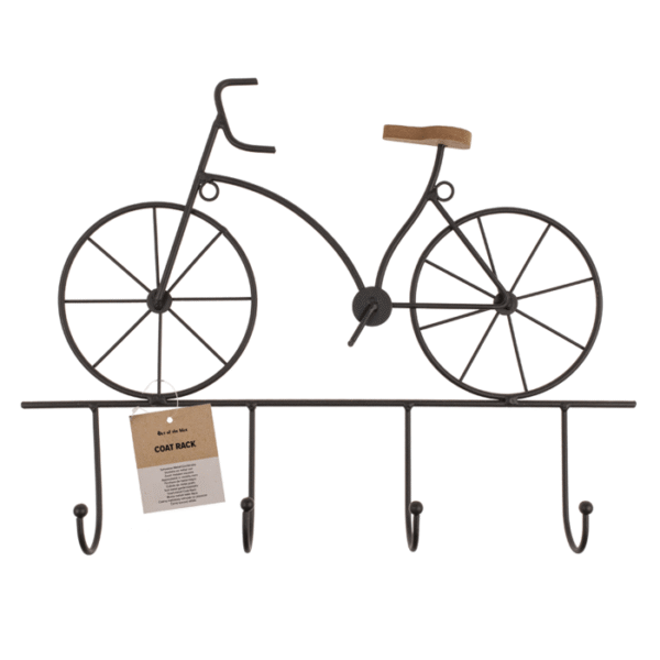 Black metal coat rack, bicycle, with 4 hooks,