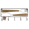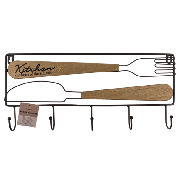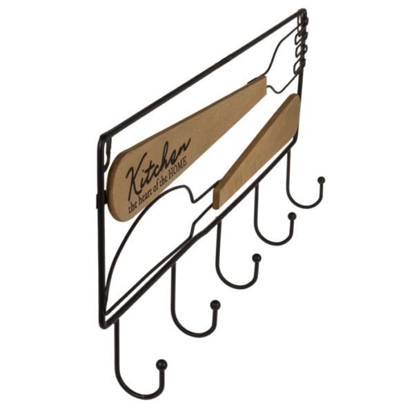 Black metal kitchen wardrobe, cutlery, with 6 hooks and wooden decor, ca. 45 x 3,8 x 20,5 cm Metal kitchen organizer