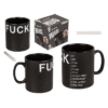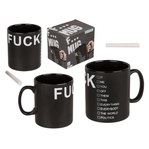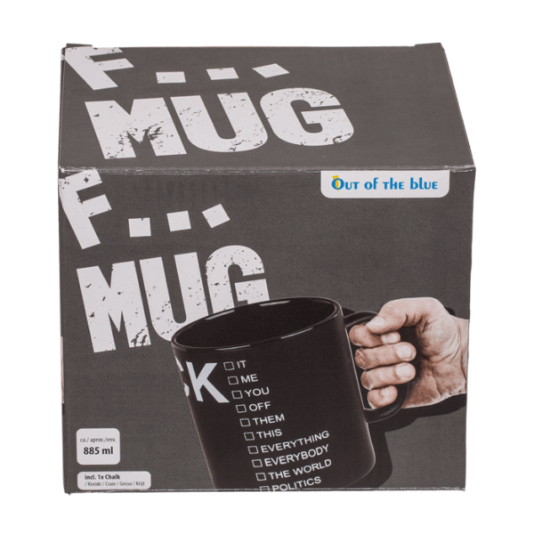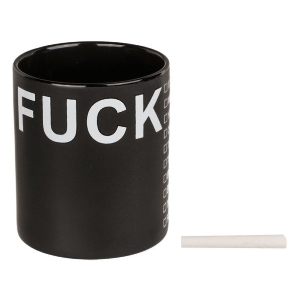 Black Mug, Fxxx, ca. 12,5 x 11 cm, approx. 885 ml, incl. 1 pc chalk, stoneware material – Sometimes you just get up on the wrong side of the bed in the morning and you don’t know why everything sucks. This mug will help you answer this question and offers you several possible answers to find the reason for your anger. On top of that, you can directly tick the respective box with the chalk provided, so that everyone around you knows what’s bothering you. And you know, after a cup of coffee the world is a much nicer place anyway! Black Mug