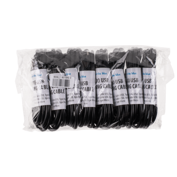 Black USB cable, Typ Micro, L: ca. 1 m, 8 pcs. in polybag, refillset for item 579240 – The robust cable ensures maximum protection, durability and flexibility that is to reduce fraying. Thanks to the length of the cable, you can move freely despite being connected. The flexible cables also do not tend to get knotted. USB cable