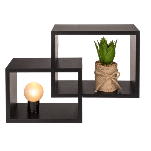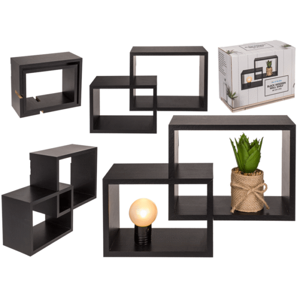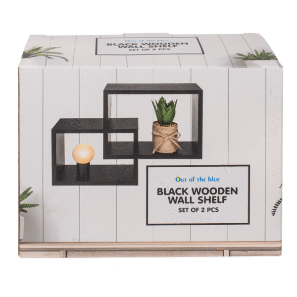 Black wooden wall shelf, Set of 2 pcs, ca. 17 x 13 x 9 cm & 19,5 x 15,5 x 9 cm, in color box Black shelf