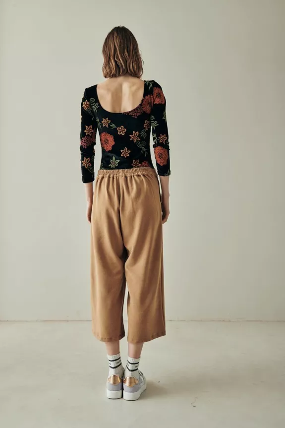 Long-sleeved bodysuit, perfect for winter, in a beautiful embroidered velvet. Easily combined with the rest of the items in the collection, it will be a great addition to your winter wardrobe. Easy to put on and take off thanks to its buttons at the hem, it’s a sure value.