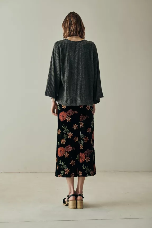 Long-sleeved top in a soft and warm ash-gray ribbed fabric, perfect for this season. A perfect basic to combine with your wardrobe and wear in any setting. Its pleasant texture and comfort will make you want to wear it all winter, and its easy maintenance will make it a reality.