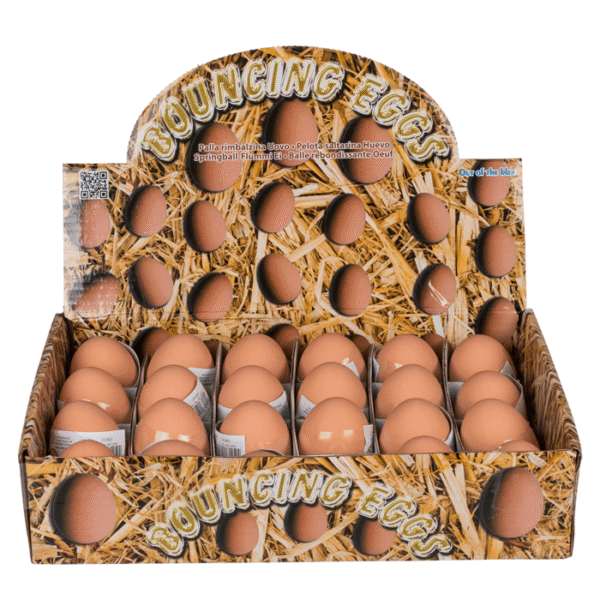 Bouncing ball, Egg, ca. 5.5 cm, 24 pcs. per display – Play endless tricks with the bouncy egg, a bouncy egg that will scare many a person when you throw it at their feet. Don’t miss the startled faces and laughter of the children in your family. The light weight of the eggs makes it easy for the little ones to transport the toy. Bouncy ball