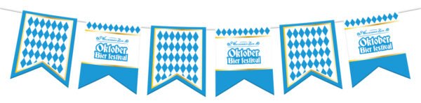 Bunting Garland October Beer Festival – 10 meters. Contents: 1 flag line. Colour: Multicolour. You can use this article for the following party occasion(s): October Beer Festival and Theme Parties. The flag line is 10 meters with 15 flags of 15x20cm. The garland is printed on both sides. The article is made of paper.