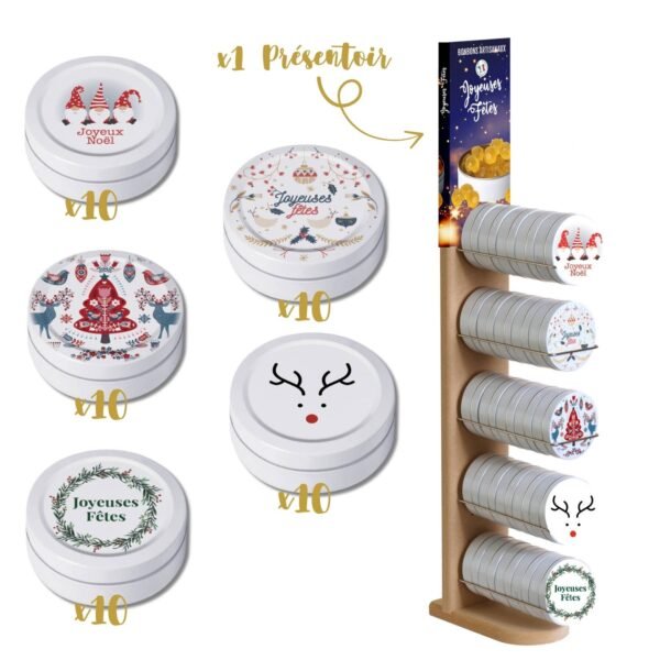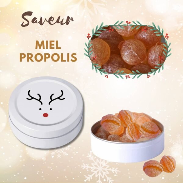Discover our Happy Holidays Pack, an assortment of 50 boxes of artisanal candies made in France, with quality ingredients, including honey from our own hives. Each 70mm box, decorated with festive graphics, contains 45g of candies in various flavors, perfect for giving or enjoying during the holidays.
