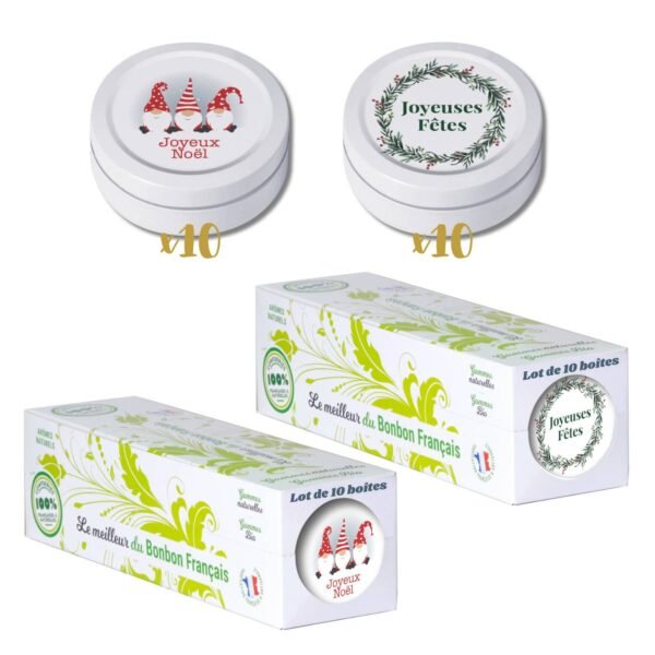 Enhance your store with our Happy Holidays Pack of 20 boxes of artisanal candies, combining tradition and freshness. This pack includes 10 Honey flavor boxes and 10 Vichy Pastilles boxes, offering a duo of soothing and refined flavors.
