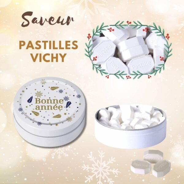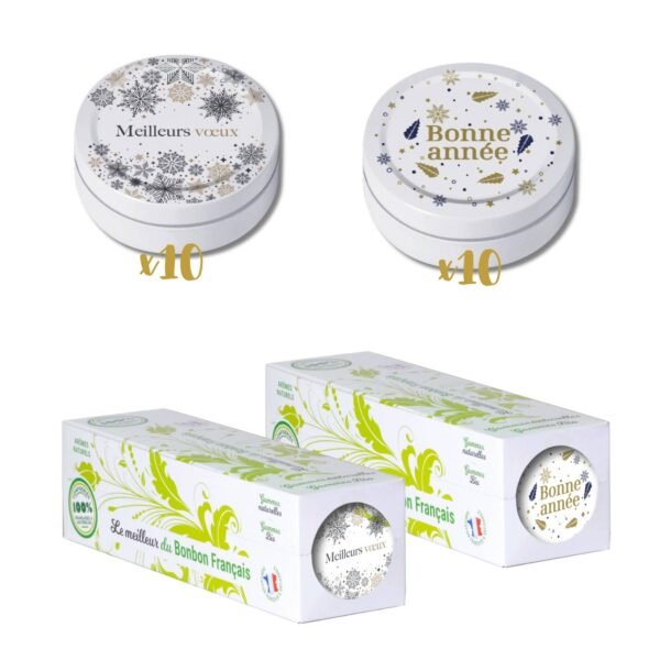 Enhance your store with our Best Wishes Pack of 20 boxes of artisanal sweets, perfect for celebrating the New Year. This pack offers 10 boxes of Vichy Pastilles and 10 boxes of Honey candies, a duo of authentic and timeless flavors.