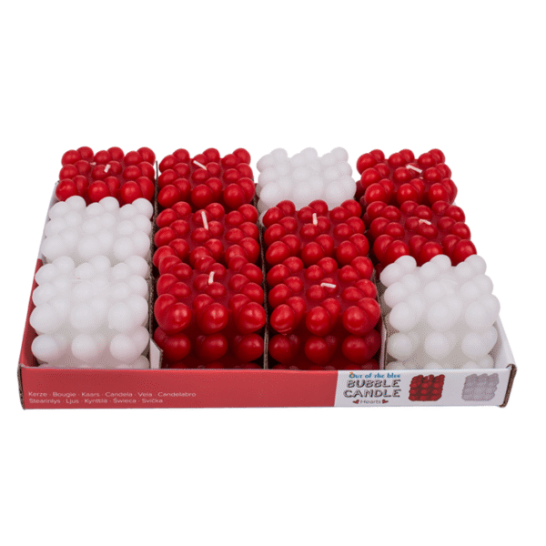 Candle, Bubb Hearts, ca. 6 cm, red & white assorted, 12 pcs per PDQ (8 x red, 4 x white) Heart Candle