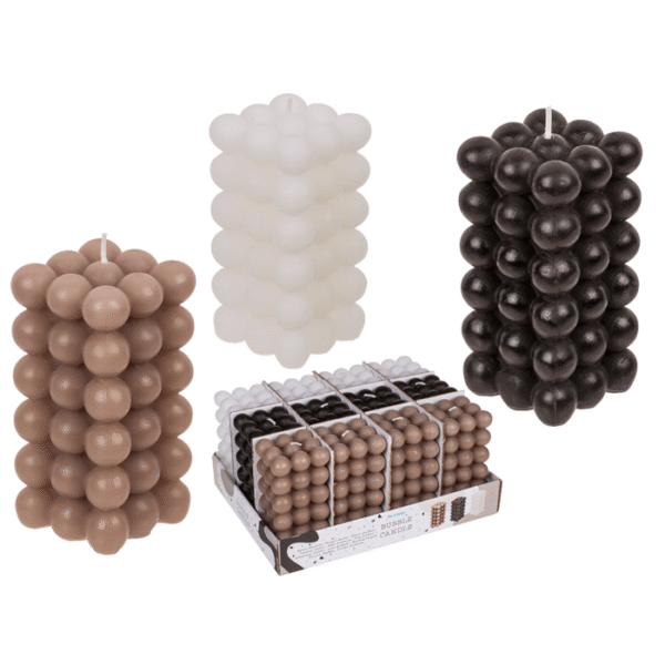 Candle, Bubble, 6 x 12 cm, 3 colors assorted, 12 pcs per PDQ Candle