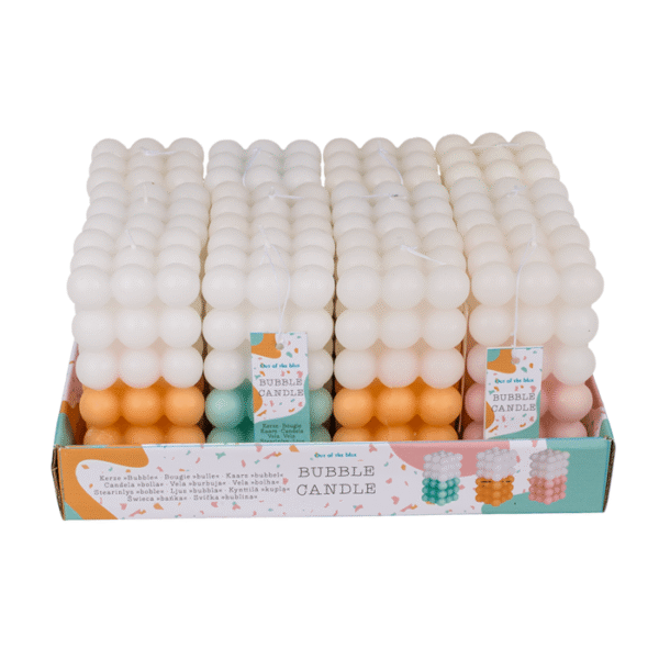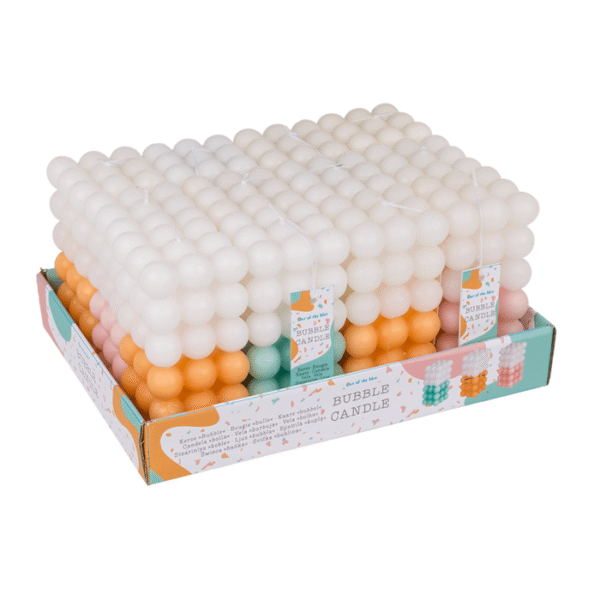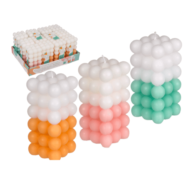 Candle, Colourful Bubble, ca. 6 x 12 cm, 3 colors assorted, 12 pcs per PDQ Bubble candle