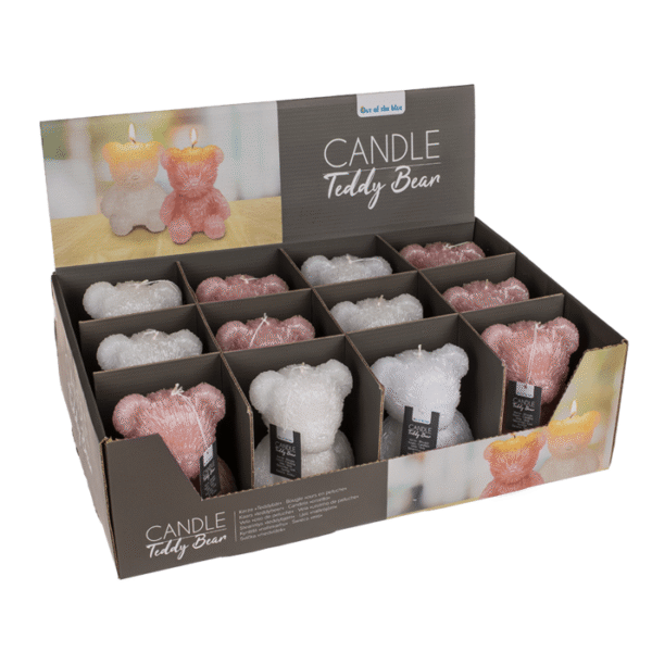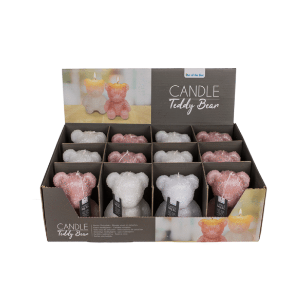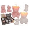Candle, teffy bear, ca. 11 x 9,5 x 13,5 cm, 2 colors assorted, 12 pcs per display Decorative candles