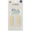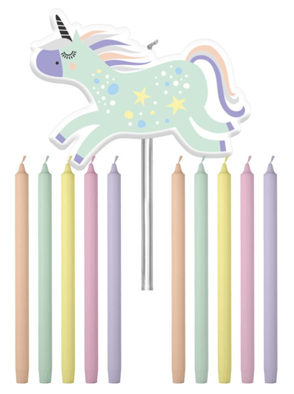 Candles Unicorns & Rainbows 10cm – 11 pieces. Contents: 11 candles and 10 candle holders. Colour: Multicolour. You can use this article for the following party occasion(s): Children’s party. Each candle is approximately 10 cm tall. This article is made of wax.