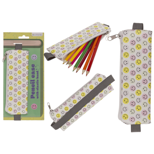 Case with zipper, Be Happy, with elastic bookband (27 cm) for A4 + A5 format, 19,5 x 6,5 cm, made of PU, on headercard – zippered pouch for A4 A5PU leather pencil caseelastic bookband caseBe Happy stationery pouchschool supplies pencil caseoffice document organizertravel pen organizergift idea for studentsretail headercard packagingcompact zipper case 19.5×6.5 cm