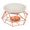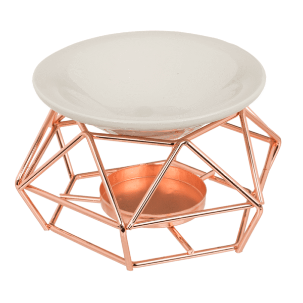 Ceramic bowl on rose gold metal frame, with tea light holder, aprox. 12 x 8 cm, in gift packaging – With this aroma lamp, you can create a fabulous and intense fragrance in your home! Simply place a tea light candle in the base and a bit of scented oil or a chip at the top of the lamp. The oils and chips will then start to spread their unbeatable scent. The aroma lamps are ideal as an indirect light source and also provide a pleasant fragrance at the same time. An ideal decoration and a perfect gift. Ceramic bowl