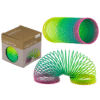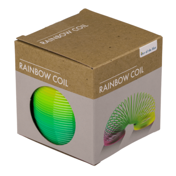 Coil, Rainbow, ca. 6, 5 cm, plastic, in gift box – The rainbow spiral is also called a stair climber. If you put it on the top step of the stairs and give it a little push, it runs merrily down the stairs. It is colourfully designed in rainbow colours and approx. 10 cm tall. The toy is a fun pastime and calming to watch. Spiral Rainbow