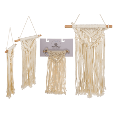 Creme colored wall decoration, Makramee, ca. 47 x 25,5 cm, with headercard – Cream Wall Art