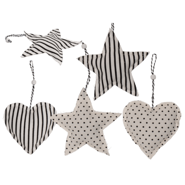 Creme coloured Fabric star & heart for hanging, with dots & stripes, ca. 13 x 12 cm, 4 ass. – The soft ornaments made of fabric visually match almost any Christmas fir tree. They are also perfect as gift labels to keep all the presents apart. The creme coloured ornaments can be used every year if stored optimally. They are also a nice change from usual tree decorations. Cream Fabric