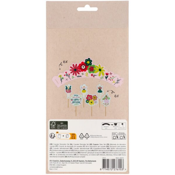 Everything is delicious with happy fairies! Cupcake Deco Set – Fabulous Fairy – 6 sets. Contains: 6 sets