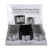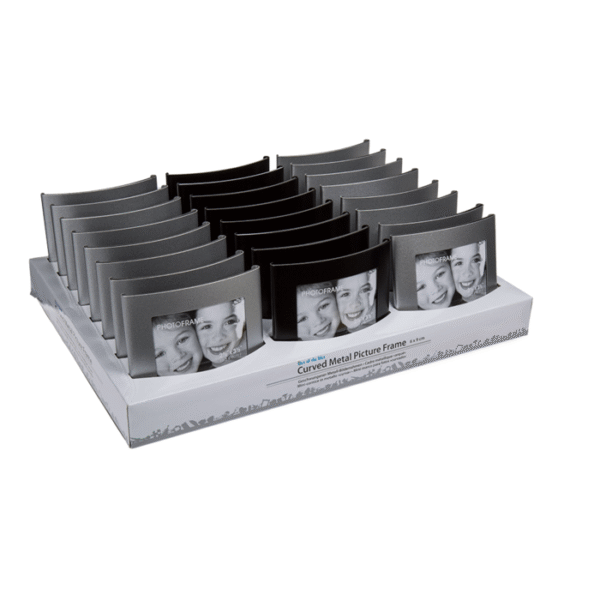 Curved metal picture frame, 6 x 9 cm, 2 colours ass., 24 pcs. per display – This picture frame is the perfect way to showcase your favourite memories! The metal surface and the slightly outward curved shape of the photo frame provide it with a modern look. The picture frame is equipped with a stand with which you can place your most beautiful picture decoratively in your home. Metal frame