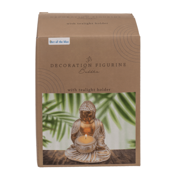 Decoration figurine, Buddha, with tealight holder, ca. 10 x 8,5 x 14 cm, made of polyresin, in gift box Buddha figurine