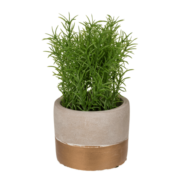 Decoration herbs in greygold coloured cement pot, ca. 14-16 cm, 3 ass., – These super pretty grey& gold coloured cement pots will fit perfectly in your kitchen. The decorative herbs will make your living space look greener without you needing a green thumb! So you don’t have to remember to water the plants or put them in the sun. You can choose between 3 herbs, all with the same modern looking pot. Herb decoration