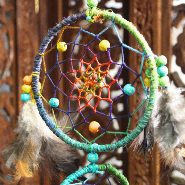 Dreamcatcher Rainbow with Hemp Cord & Feathers brings new energy, protection and a touch of natural spirit to any space.