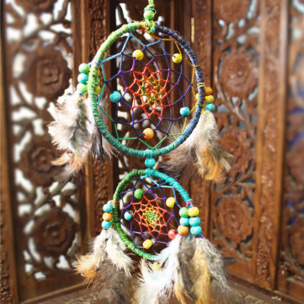 Handcrafted with hemp thread and real feathers it’s designed to capture bad dreams and let only positive energy through.