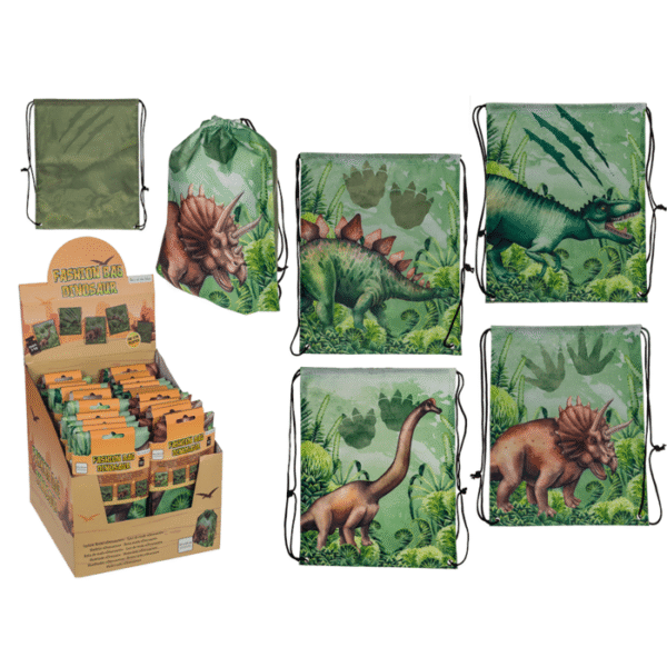 Fashion bag, Dinosaur, 43 x 34 cm, with textile strings, 4 ass., on header card, 24 pcs. per display – Bag Fashion Dinosaur Size Trendy