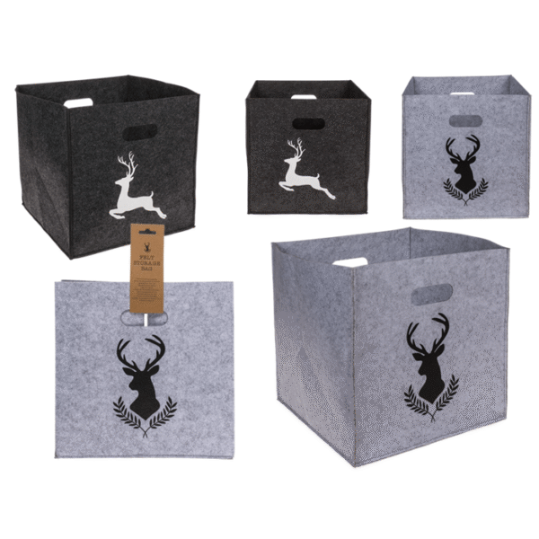 Felt storage box, DeerDeer head, 32 x 32 x 32 cm, 2 styles assorted, with banderole for hanging, 12 pcs per big polybag (size matching IKEA Kallax) Felt box