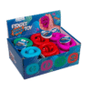 Fidget Snap Squeeze Toy, Silicone, approx. 30 g, 6 x 6 x 1,2 cm, 4 colours asstd., 24 pcs p. display – The colourful Fidgets are a salvation for all those who have to constantly bob their leg or do constantly something with their hands. Thanks to their shape, in addition to stress reduction, our wrist will also be trained. The material consists of friendly silicone. Through the sound of squeezing and releasing we manage our nervousness and stress better. Fidget Toy