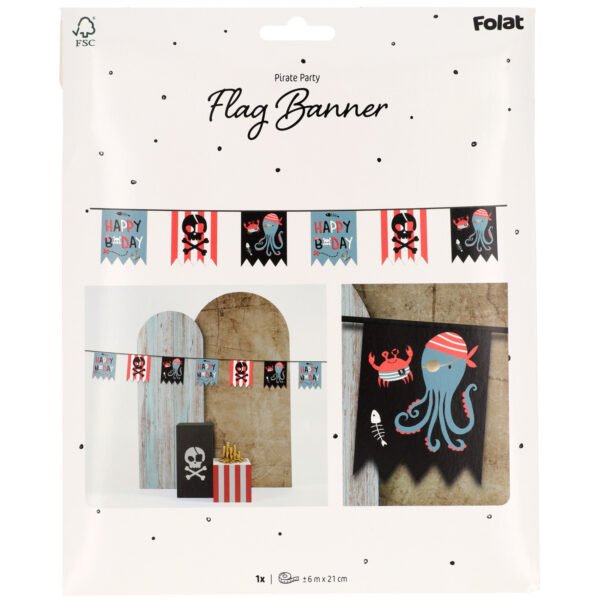 Hoist the flag line! Flag Banner – Pirate Party – 6 meter. Contains: 1 flag line. You can use this article for the following party occasion(s): Children’s party