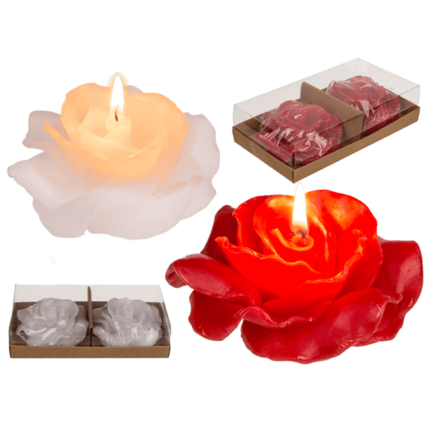 Floating scented candle, Rose blossom, ca. 10 x 4 cm, set of 2 in gift box, 2 colours ass. – Floating candle